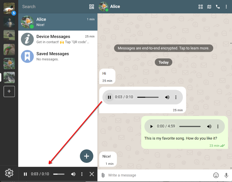 For those of us who like interacting via audio messages, this is golden: both Desktop and Android now support playing audio messages in the background.